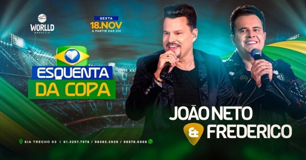 Esquenta da Copa: dupla João Neto e Frederico faz show na Worlld na sexta (18)